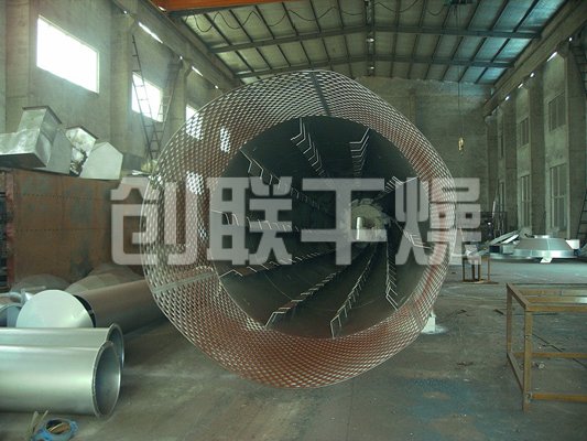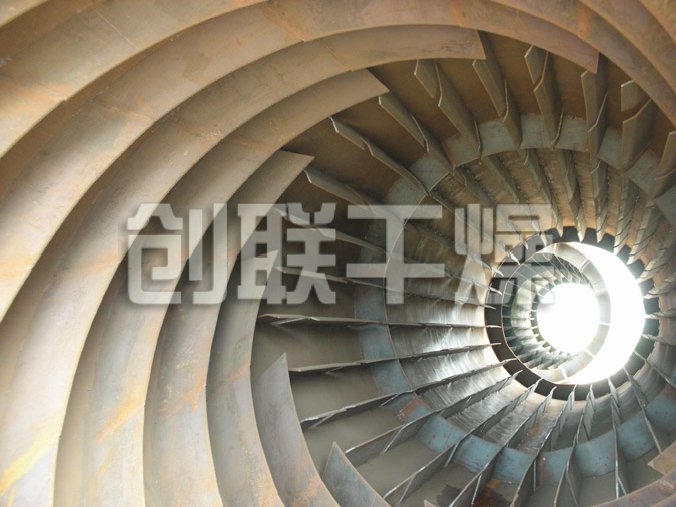 濕物料從干燥機一端投入后,在內筒均布的抄板器翻動(dòng)下,物料在干燥器內均勻分布與分散,并與并流(逆流)的熱空氣充分接觸,加快了干燥傳熱,傳至推動(dòng)力。在干燥過(guò)程中,物料在帶有傾斜度的抄板和熱氣流的作用下,可調控地運動(dòng)至干燥機另一段星形卸料閥排出成品。