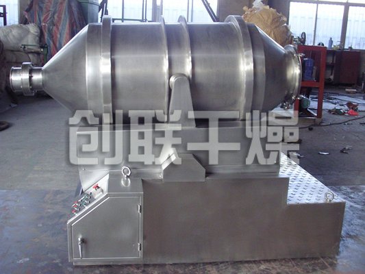 EYH二維混料機的轉筒可同時(shí)進(jìn)行二個(gè)運動(dòng),一個(gè)為轉筒的轉動(dòng),另一個(gè)為轉筒隨擺動(dòng)架的擺動(dòng)。被混合物料在轉筒內隨轉筒轉動(dòng)、翻轉、混合的同時(shí),又隨轉筒的擺動(dòng)而發(fā)生左右來(lái)回的摻混運動(dòng),在這兩個(gè)運動(dòng)的共同作用下,物料在短時(shí)間內得到充分的混合。EYH二維混料機適合所有粉、粒狀物料的混合。
