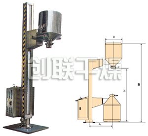 TJG 系列固定提升加料機由兩部分組成,即提升機及底座。提升機由機架、液壓提升系統及料門(mén)翻轉機構組成。工作時(shí),先將提升機的料門(mén)與料桶扣合,啟動(dòng)提升操作桿,料門(mén)與料桶一起上升,啟動(dòng)翻轉操作桿,料桶即可番轉180度,呈底桶向上姿態(tài)并移動(dòng)到所需位置,利用料門(mén)上出料蝶閥,可很容易將物料加入所需的工藝設備中。